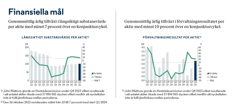 Långsiktigt ska utdelningen uppgå till 50 procent av förvaltningsresultatet per år, med hänsyn till bolagets investeringsplaner, konsolideringsbehov, likviditet och finansiella ställning i övrigt. Utdelningar kan komma att understiga det långsiktiga målet eller helt utebli.